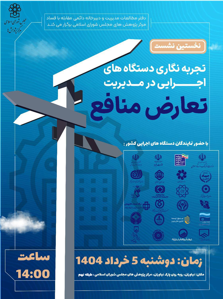 به همت دفتر مطالعات مدیریت و دبیرخانه دائمی مقابله با فساد مرکز پژوهش‌های مجلس شورای اسلامی، نخستین نشست تجربه‌ نگاری دستگاه های اجرایی در مدیریت تعارض منافع، روز دوشنبه(۵ خرداد ماه ۱۴۰۴) در مرکز پژوهش‌های مجلس برگزار می‌شود.