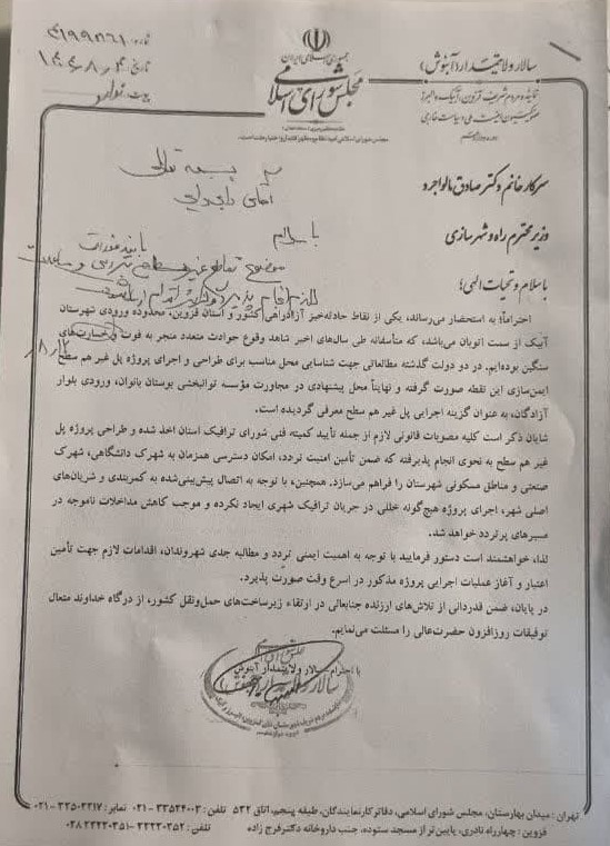به گزارش خبرنگار صبح مجلس، سالار ولایتمدار با تشریح نتایج جلسه خود با وزیر راه و شهرسازی گفت: در این نشست، دو مطالبه اصلی مردم آبیک شامل توقف قطار در ایستگاه آبیک و ایجاد دسترسی ایمن از آزادراه تهران–قزوین به شهر آبیک مطرح شد که مورد تأیید وزیر قرار گرفت.