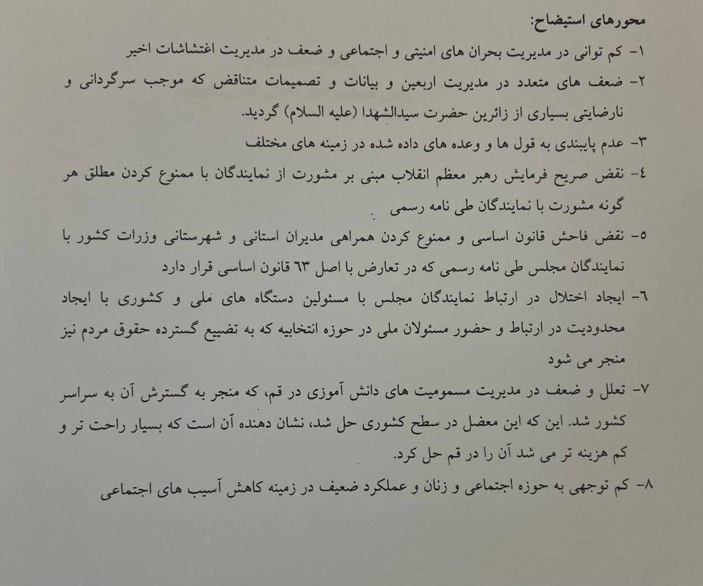 • استیضاح وزیر کشور منتفی نشده است