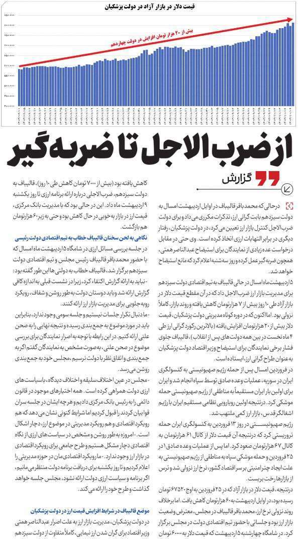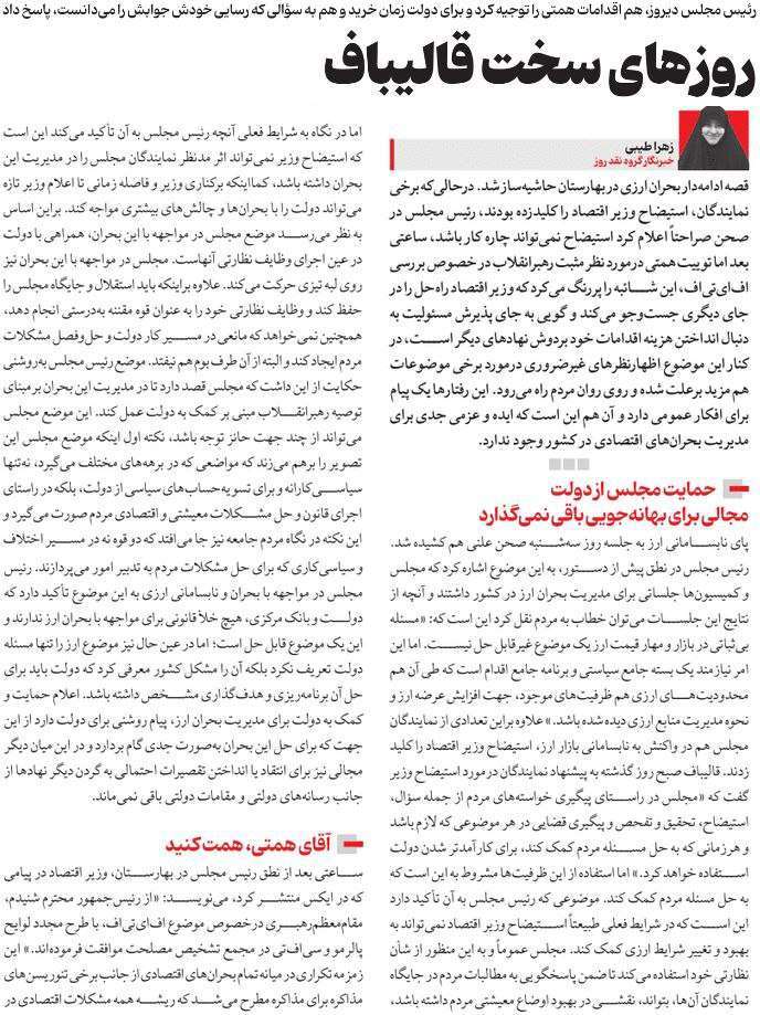 روزنامهٔ دنیای اقتصاد: همسویی ارزی دولت و رئیس پارلمان