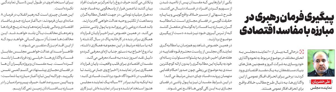 روزنامهٔ چارسوق: پیگیری فرمان رهبری در مبارزه با مفاسد اقتصادی