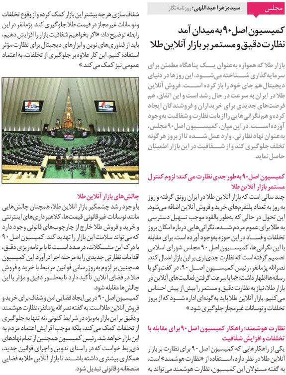 روزنامهٔ همشهری: کمیسیون اصل ۹۰ به میدان آمد نظارت دقیق و مستمر بر بازار آنلاین طلا