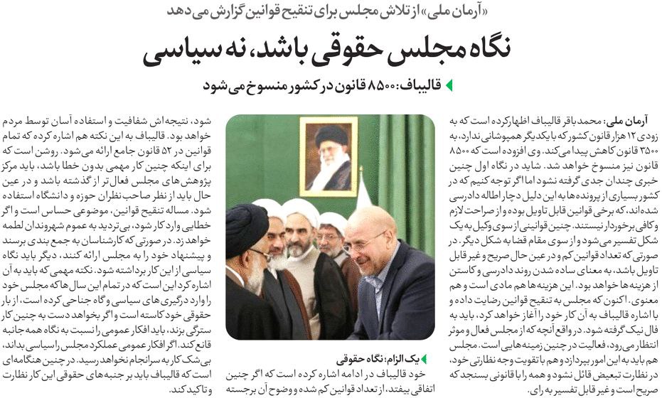 روزنامهٔ آرمان ملی: نگاه مجلس حقوقی باشد، نه سیاسی