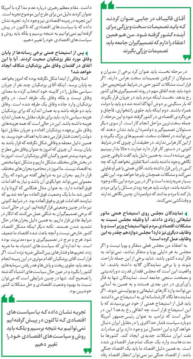 روزنامهٔ چارسوق: استیضاح وزیر اقتصاد با رویکرد کاملا غیرسیاسی