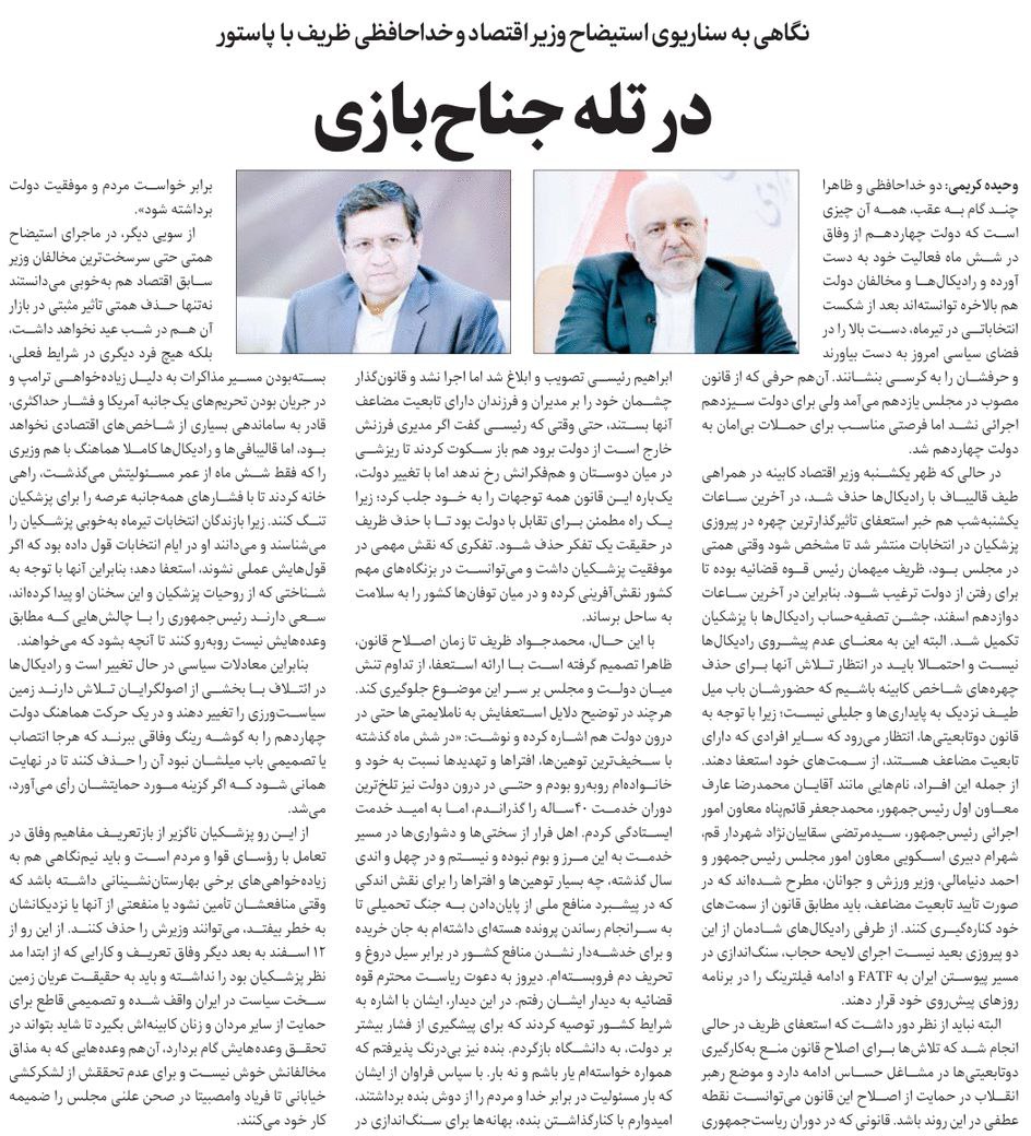 روزنامهٔ دنیای اقتصاد: سمت و سوی وفاق در پسا «استیضاح – استعفا»