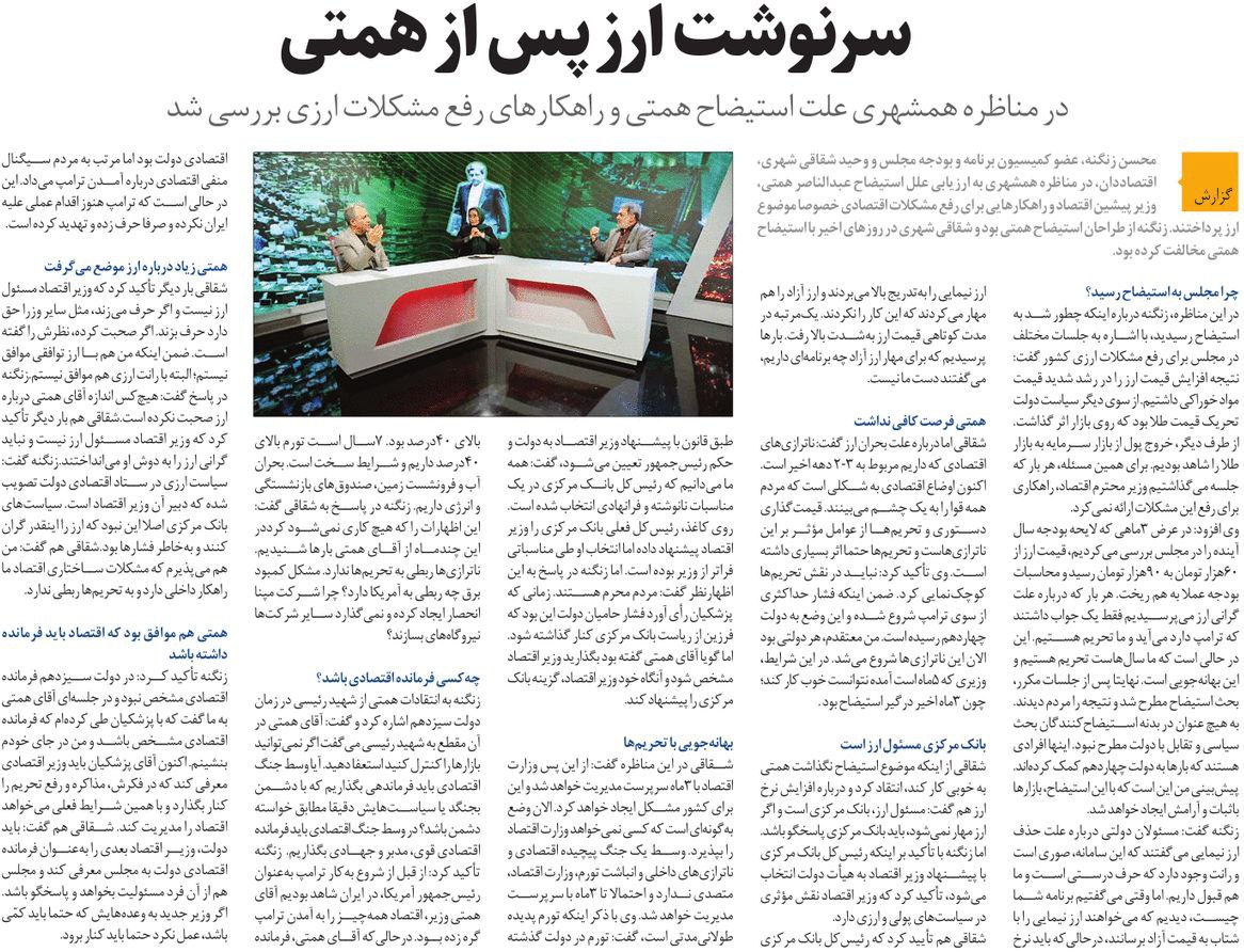روزنامهٔ‌ همشهری: سرنوشت ارز پس از همتی