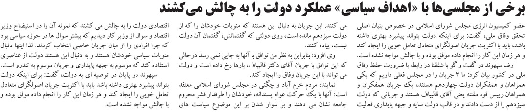 روزنامهٔ ابرار: برخی از مجلسیها با «اهداف سیاسی» عملکرد دولت را به چالش میکشند