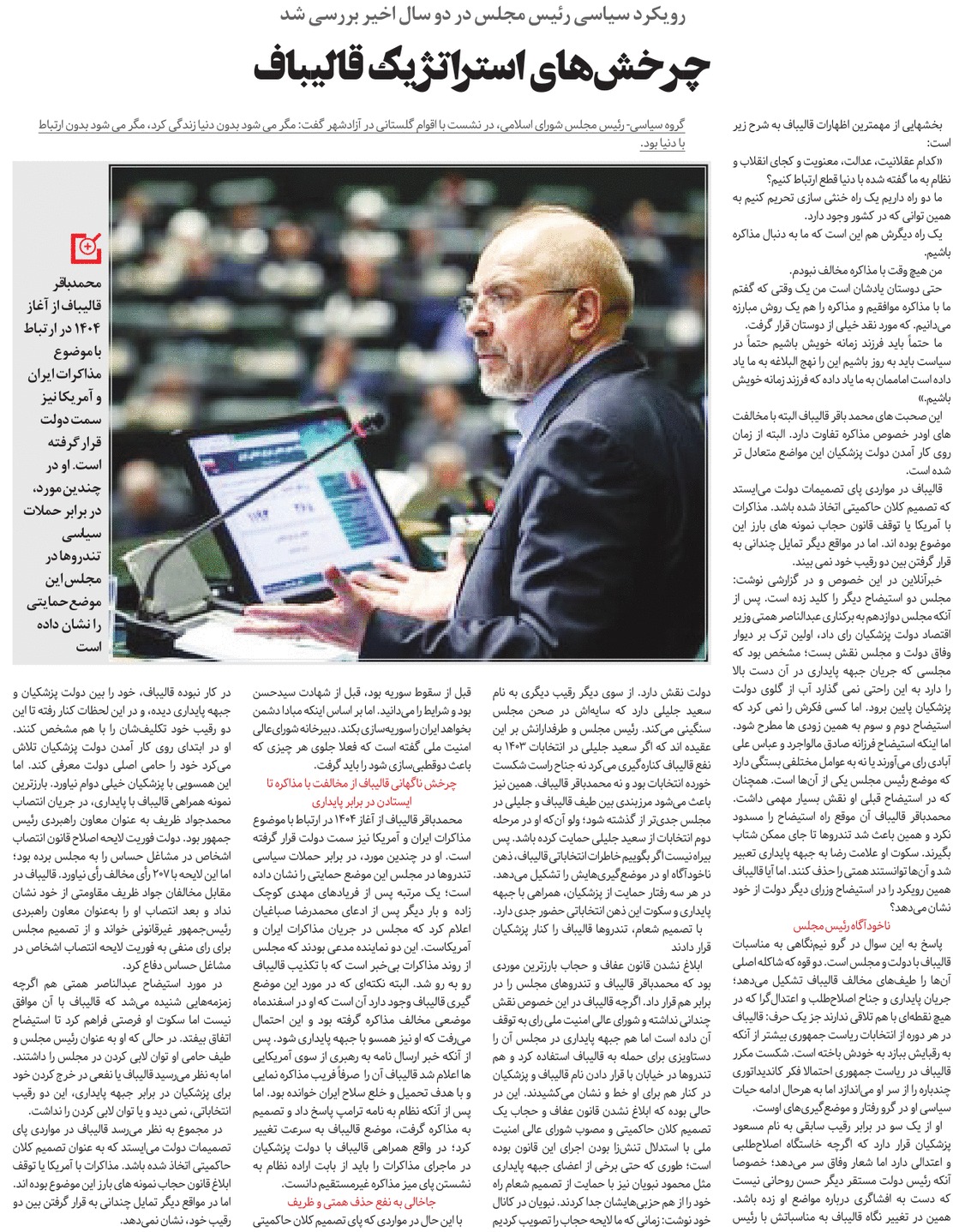 روزنامهٔ ابتکار: چرخشهای استراتژیک قالیباف