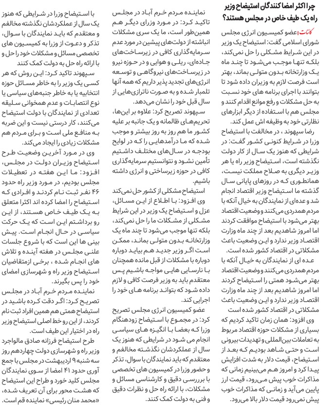 روزنامهٔ کائنات: چرا اکثر امضا کنندگان استیضاح وزیر راه یک طیف خاص در مجلس هستند؟