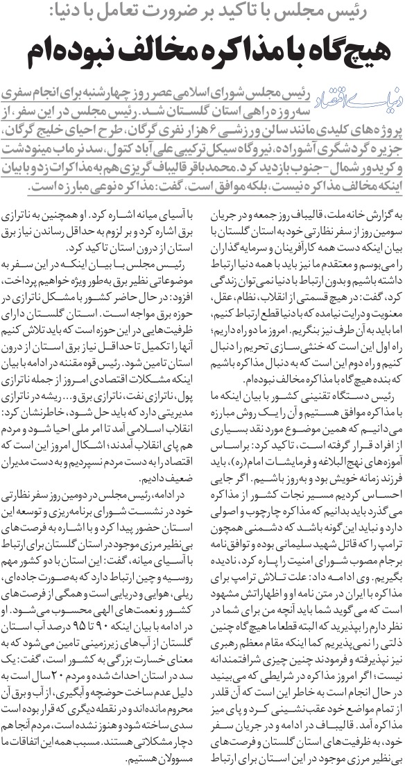 روزنامهٔ دنیای اقتصاد: هیچگاه با مذاکره مخالف نبودهام