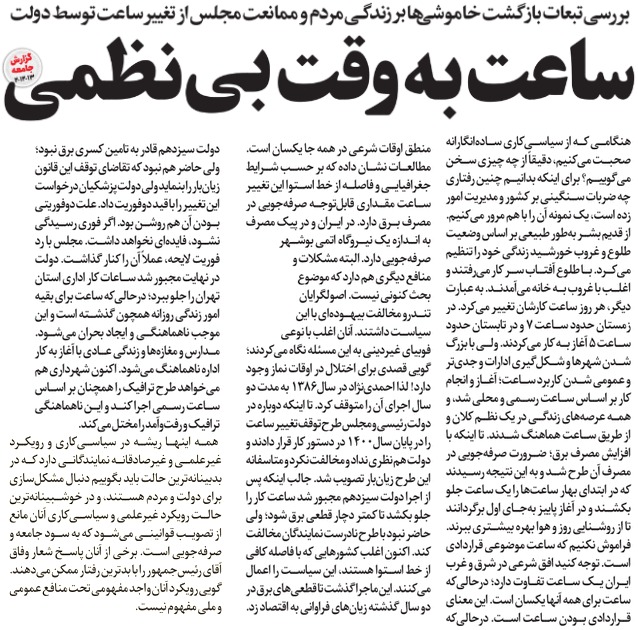 روزنامهٔ هممیهن: ساعت به وقت بینظمی