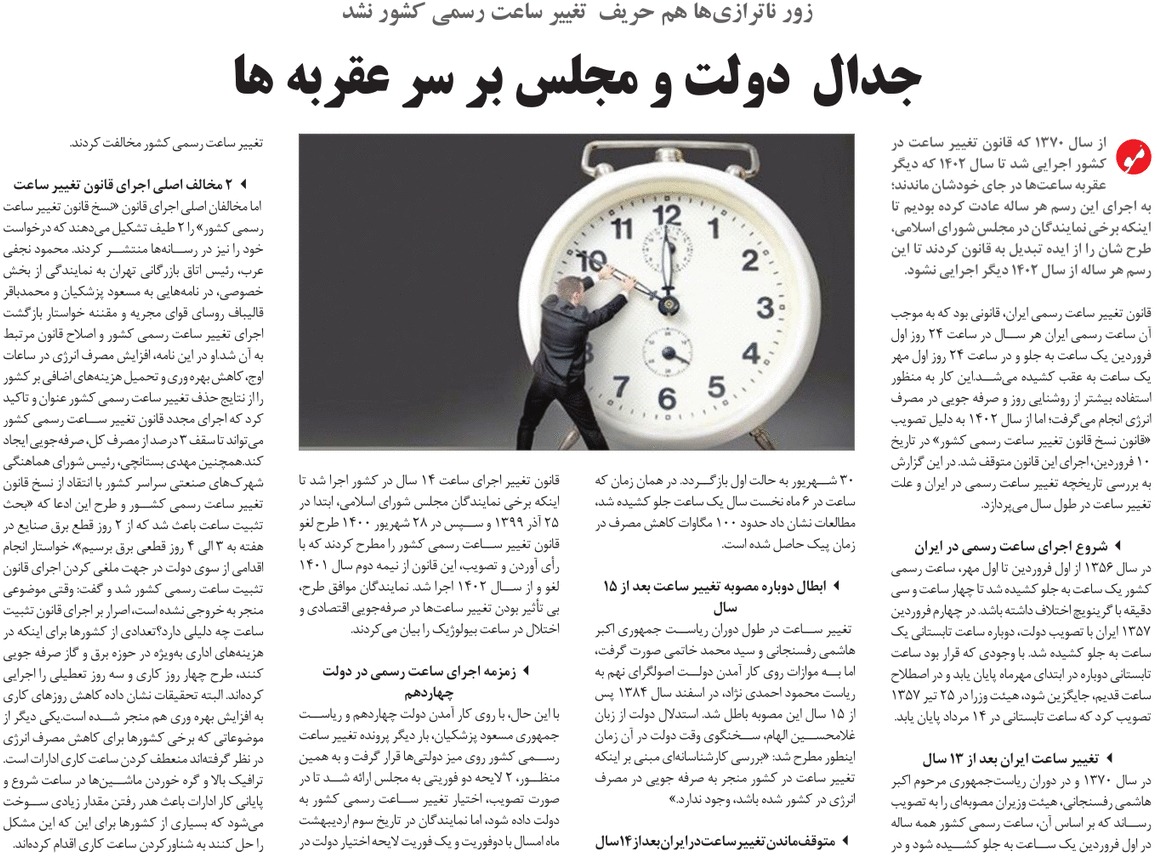 روزنامهٔ مواجهه: جدال دولت و مجلس بر سر عقربهها