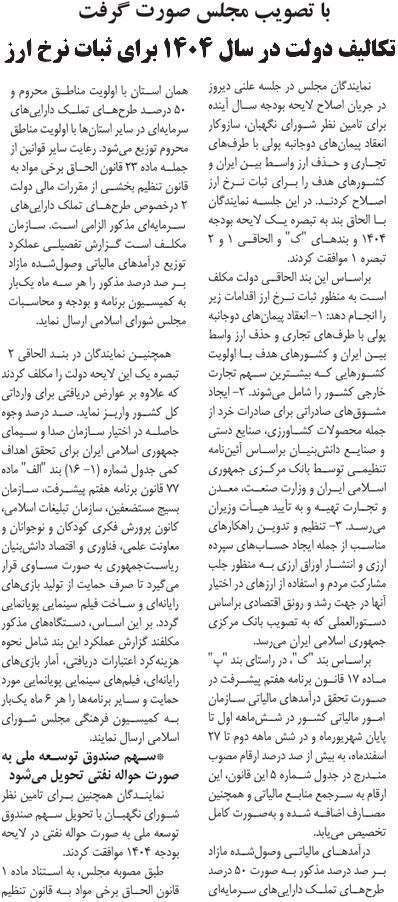روزنامهٔ همشهری: چالش مجلس و مجمع تشخیص در بررسی لایحه بودجه ۱۴۰۴