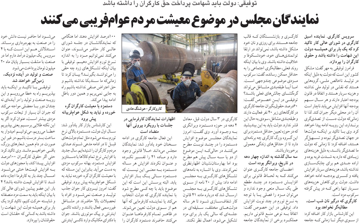 روزنامهٔ کار و کارگر: نمایندگان مجلس در موضوع معیشت مردم عوام فریبی میکنند