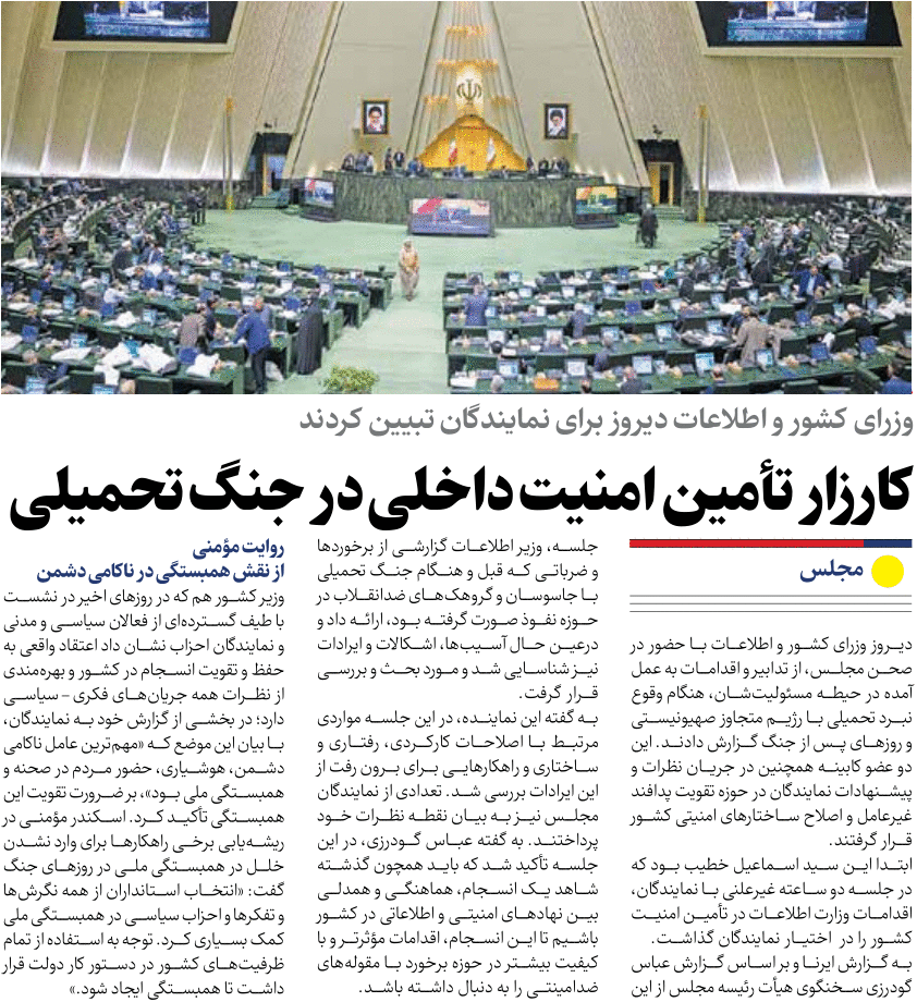 روزنامهٔ ایران: کارزار تامین امنیت داخلی در جنگ تحمیلی