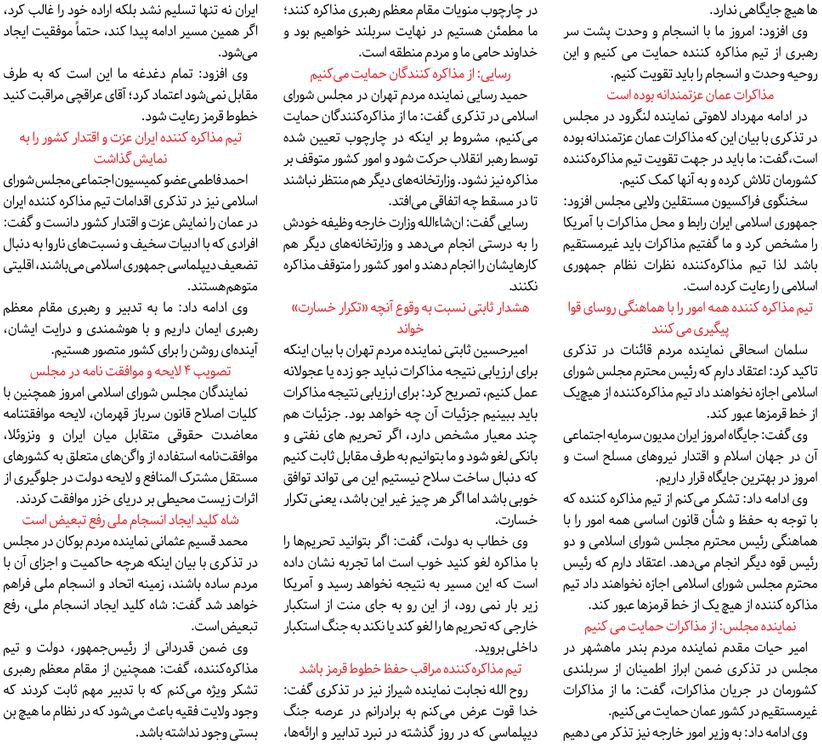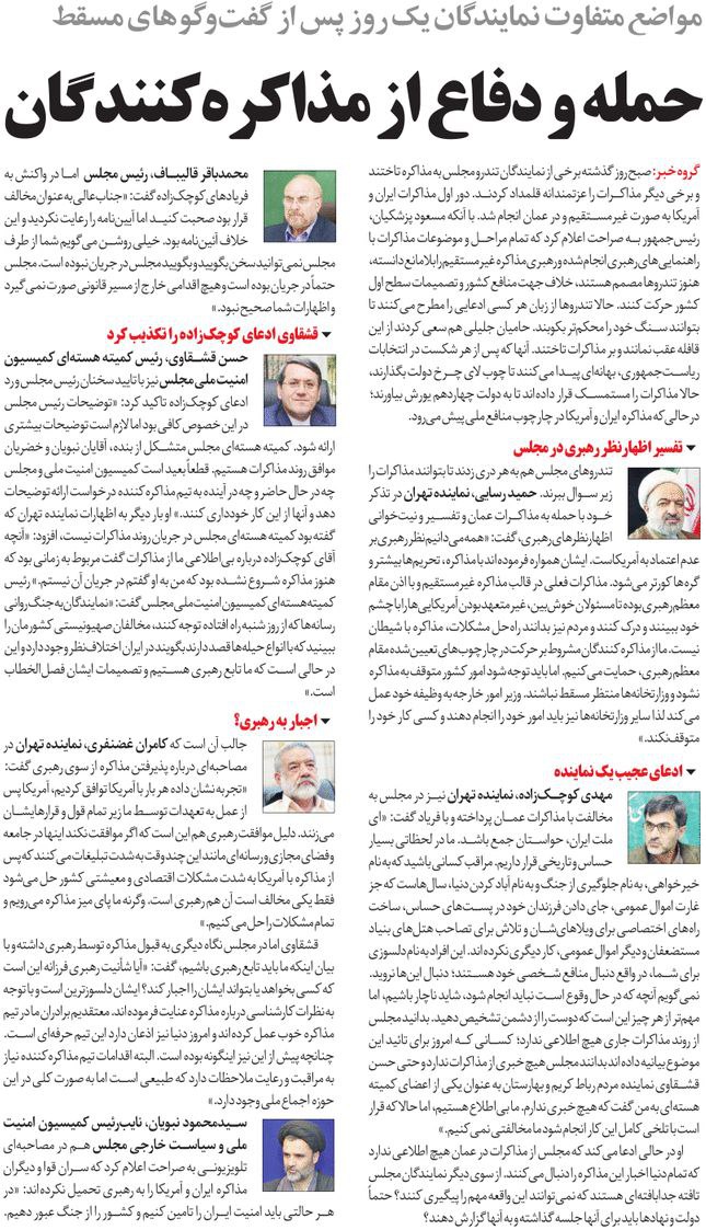 روزنامهٔ هممیهن: حمله و دفاع از مذاکرهکنندگان