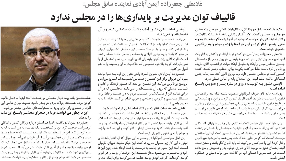 روزنامهٔ بشارت نو: قالیباف توان مدیریت بر پایداریها را در مجلس ندارد