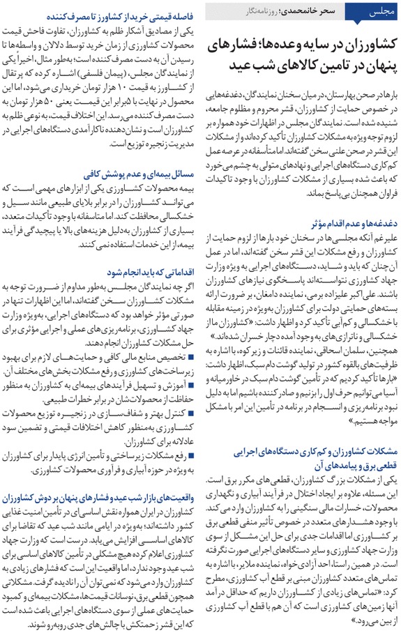 روزنامهٔ همشهری: کشاورزان در سایه وعدهها، فشارهای پنهان در تامین کالاهای شب عید