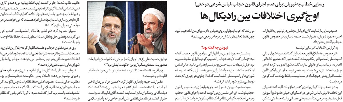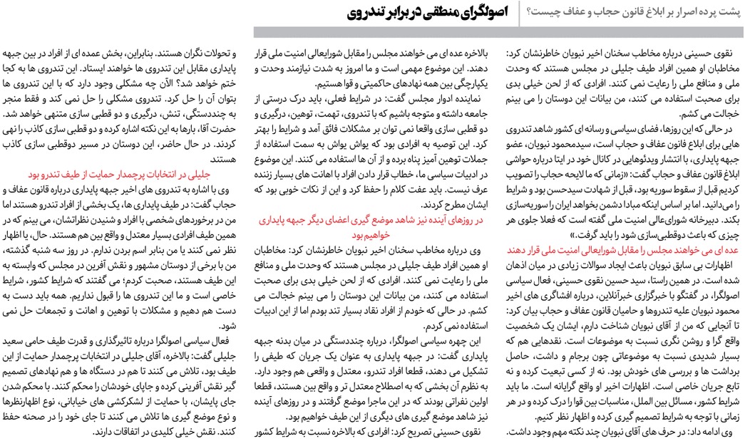 روزنامهٔ روزان: ادامه تجمع تندروها برای ابلاغ قانون حجاب