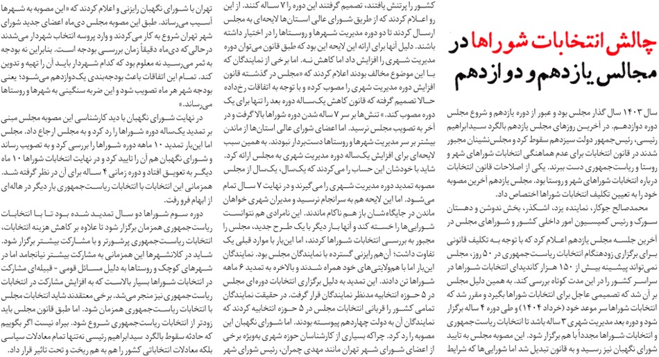 روزنامهٔهممیهن: چالش انتخابات شوراها در مجالس یازدهم و دوازدهم