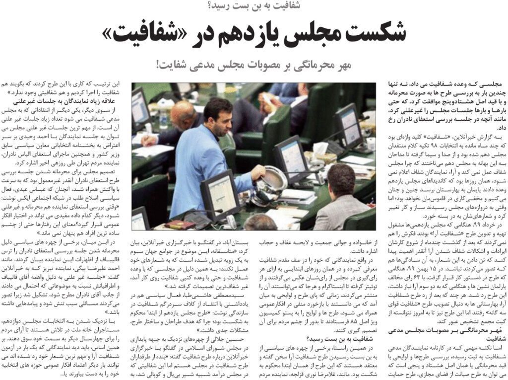 روزنامهٔ بشارت نو: شکست مجلس یازدهم در «شفافیت»