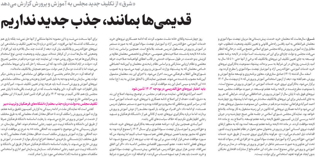 روزنامهٔ شرق: قدیمیها بمانند، جذب جدید نداریم
