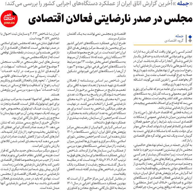 روزنامهٔ جمله: مجلس در صدر نارضایتی فعالان اقتصادی