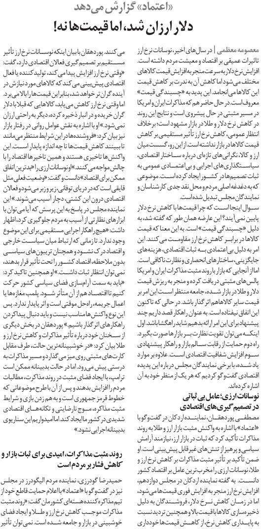 روزنامهٔ اعتماد: دلار ارزان شد، اما قیمت‌ها نه!
