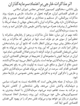 روزنامهٔ جهان اقتصاد: اثر مذاکرات خارجی بر اعتماد سرمایه‌گذاران