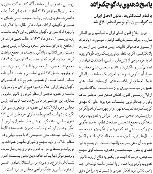 مجلس در مطبوعات – یکم خرداد ۱۴۰۴