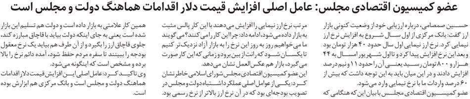 روزنامهٔ نقش اقتصاد: عضو کمیسیون اقتصادی مجلس: عامل اصلی افزایش قیمت دلار اقدامات هماهنگ دولت و مجلس است