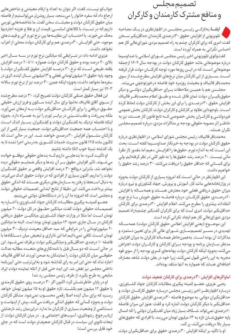 روزنامهٔ شرق: تصمیم مجلس و منافع مشترک کارمندان و کارگران