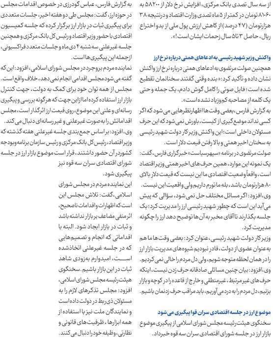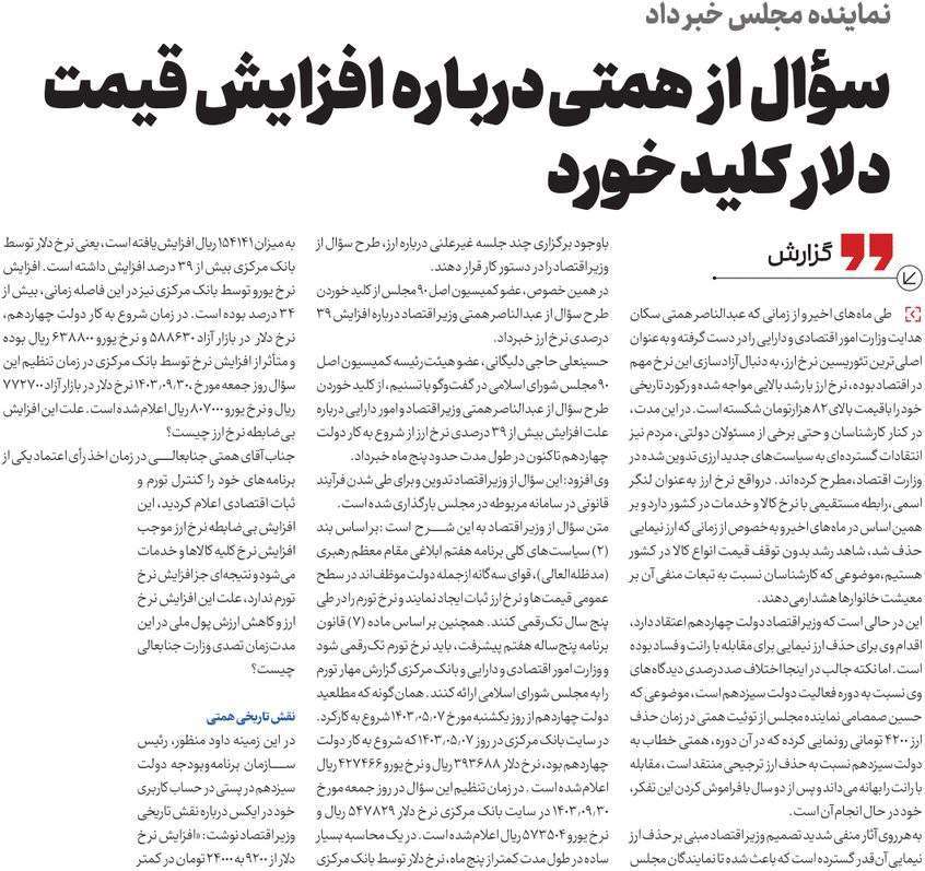 روزنامهٔ چارسوق: سوال از همتی درباره افزایش قیمت دلار کلید خورد