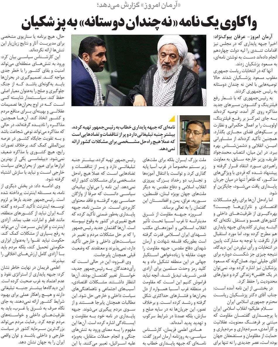 روزنامهٔ آرمان امروز: واکاوی یک نامه «نه چندان دوستانه» به پزشکیان