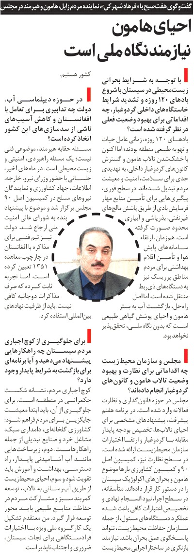 روزنامهٔ هفت صبح: احیای هامون نیازمند نگاه ملی است