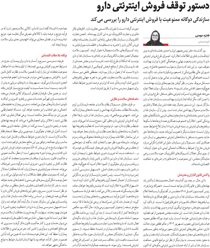 روزنامهٔ سازندگی: دستور توقف فروش اینترنتی دارو