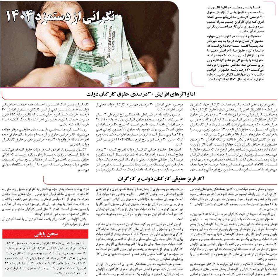 روزنامهٔ گسترش صنعت: اما و اگرهای افزایش ۳۰ درصدی حقوق کارکنان دولت