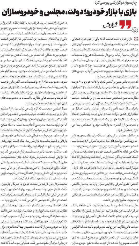 روزنامهٔ چارسوق: بازی با بازارخودرو: دولت، مجلس و خودروسازان