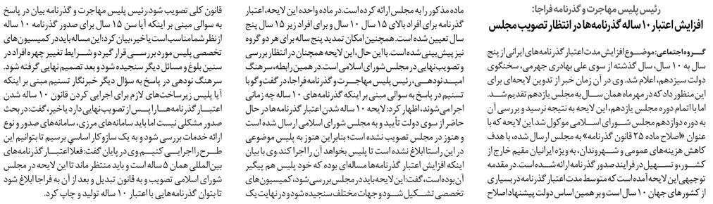 روزنامهٔ نقش اقتصاد: افزایش اعتبار ۱۰ ساله گذرنامهها در انتظار تصویب مجلس