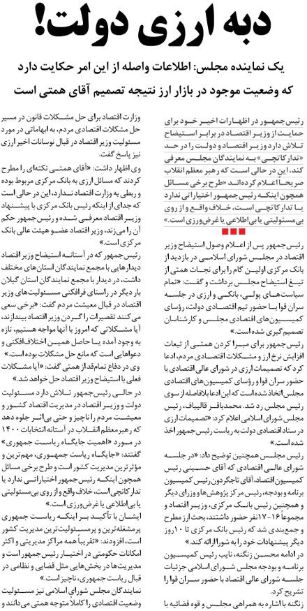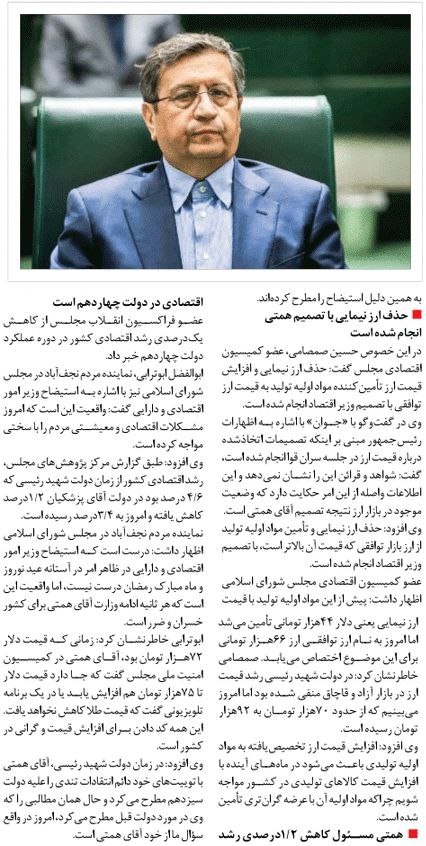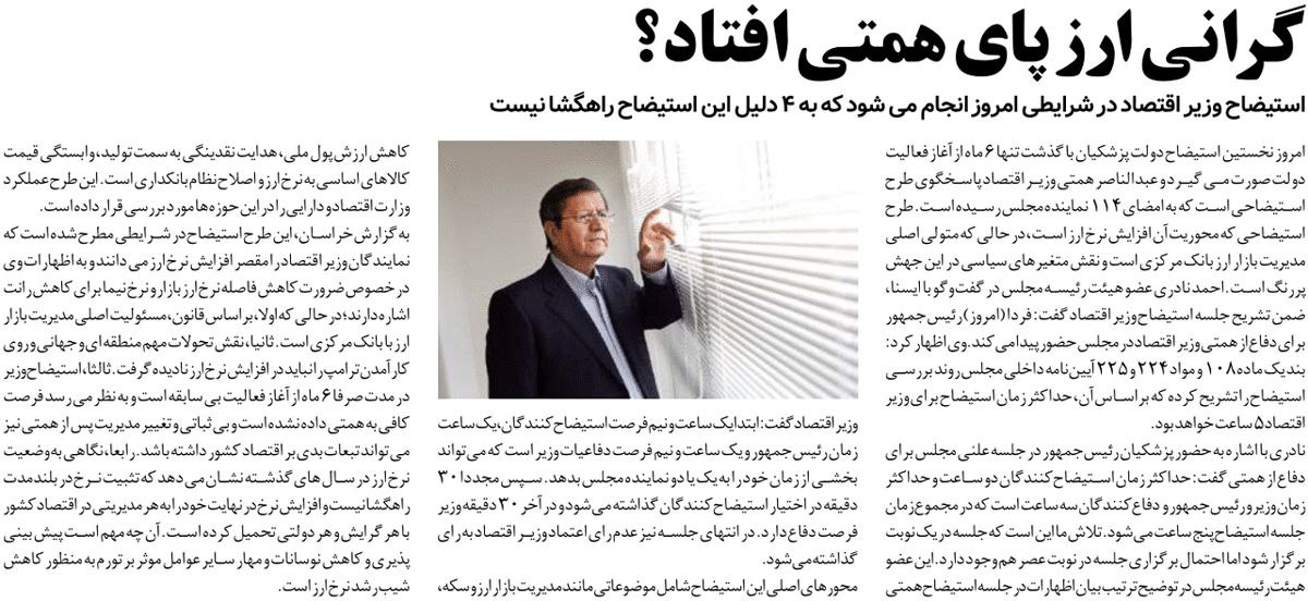 روزنامهٔ خراسان: گرانی ارز پای همتی افتاد؟