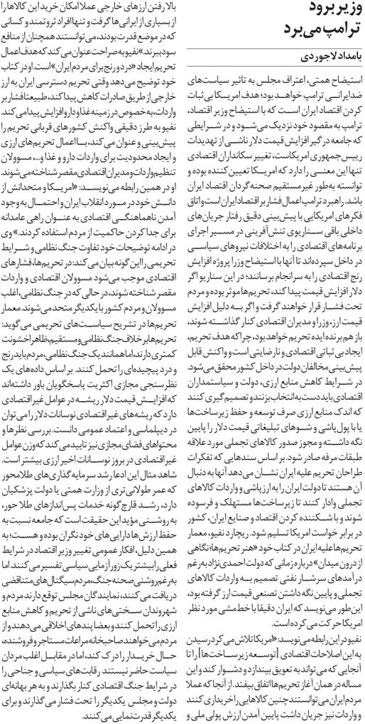 روزنامهٔ اعتماد: وزیر برود ترامپ میبرد