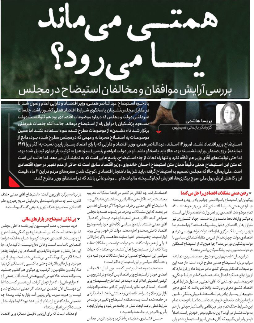 روزنامهٔ هممیهن: همتی میماند یا میرود؟