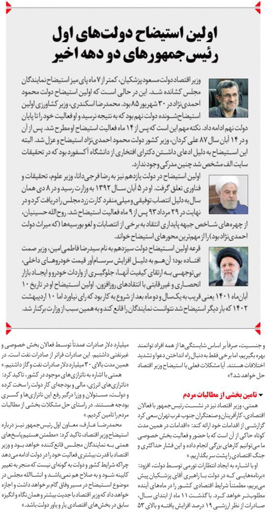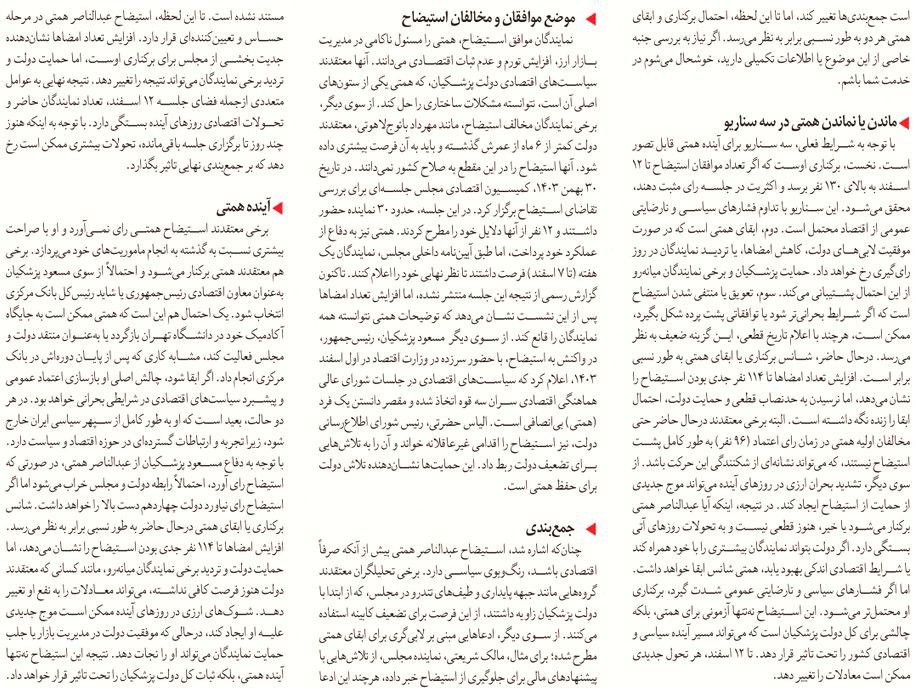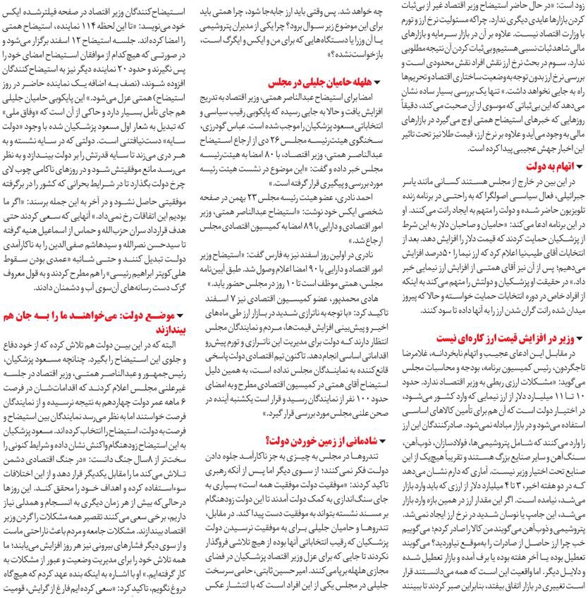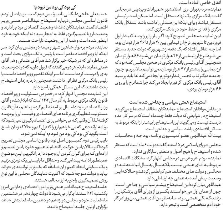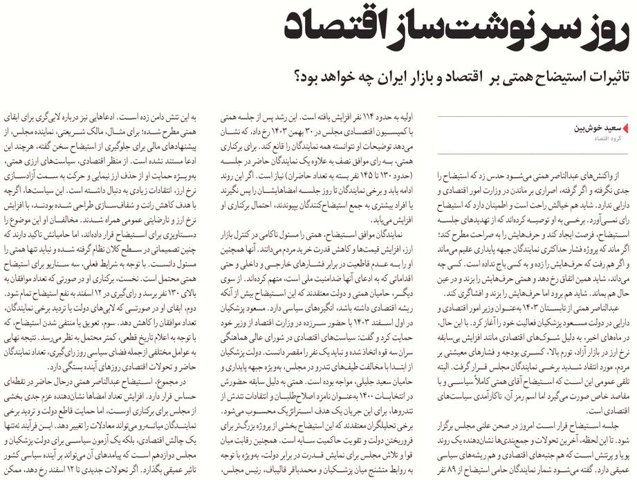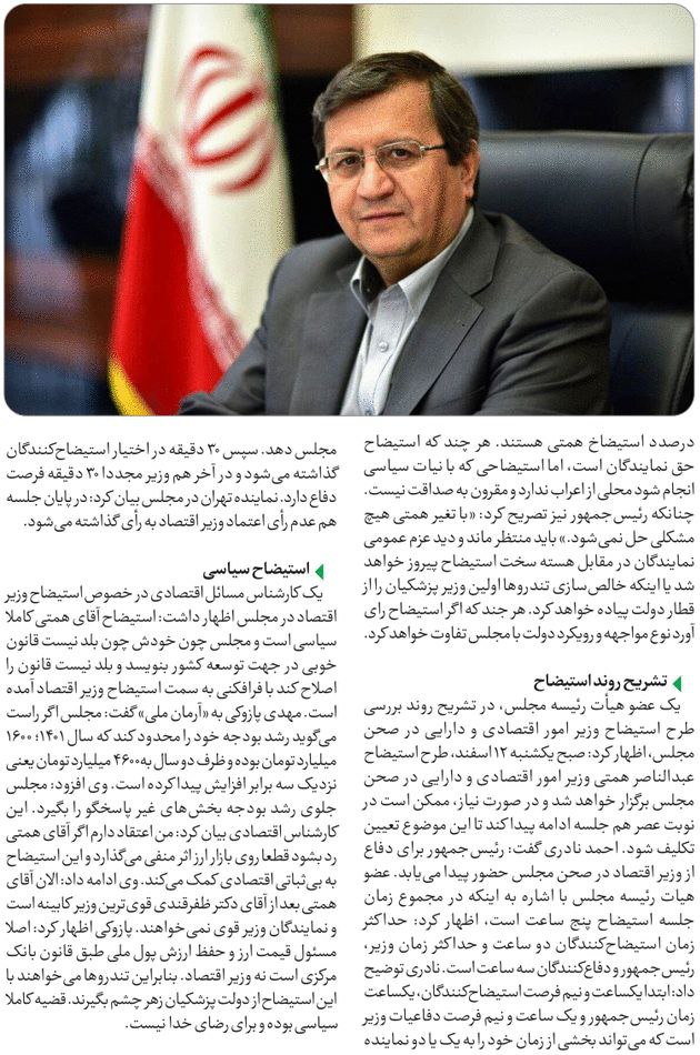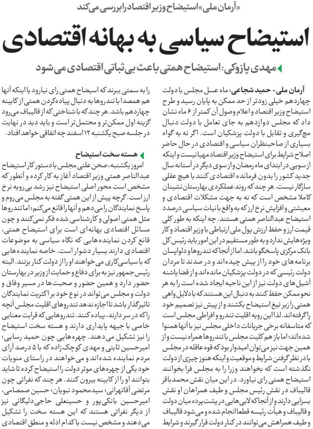 روزنامهٔآرمان ملی: استیضاح سیاسی به بهانه اقتصادی