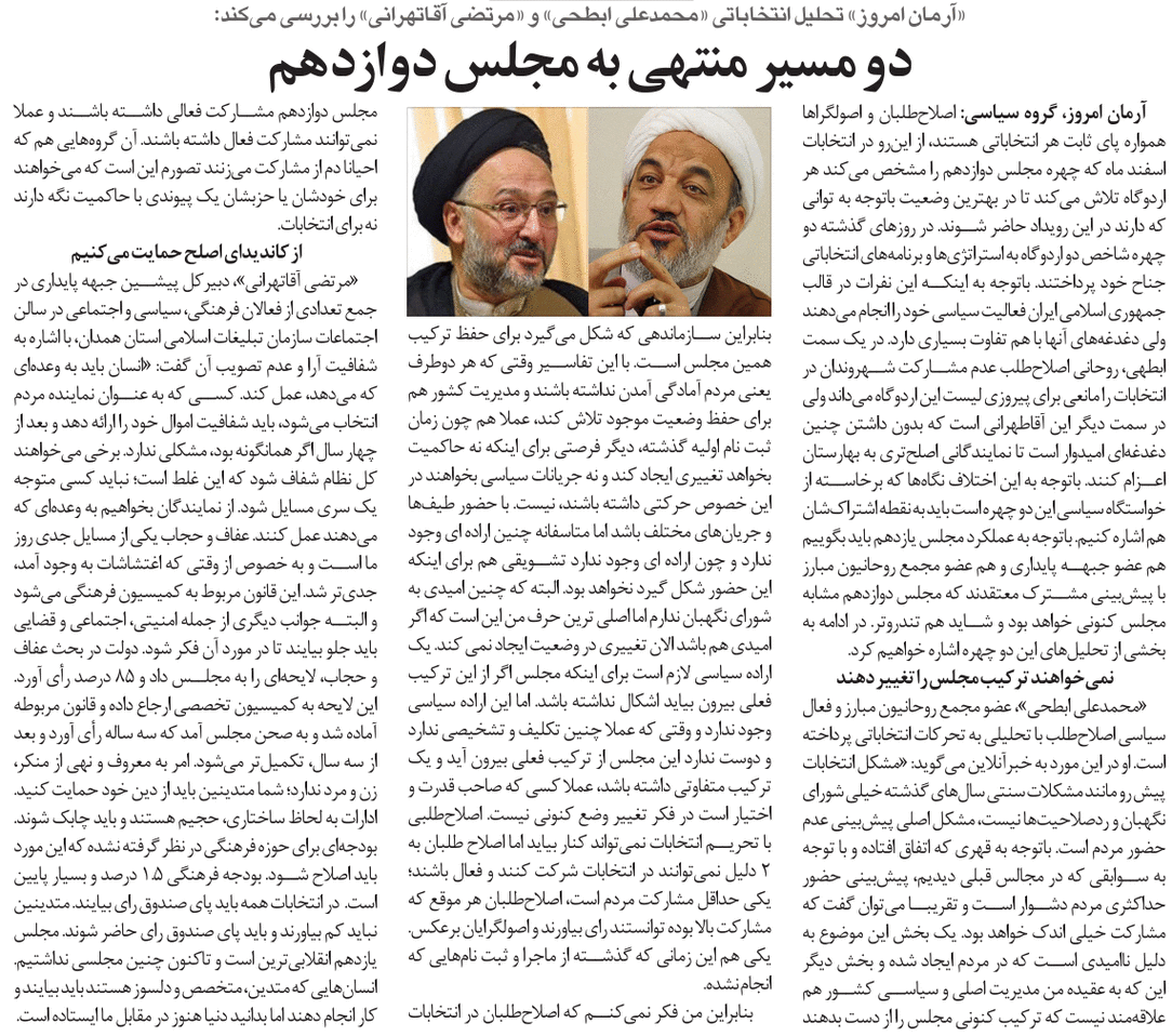روزنامه آرمان امروز: دو مسیر منتهی به مجلس دوازدهم