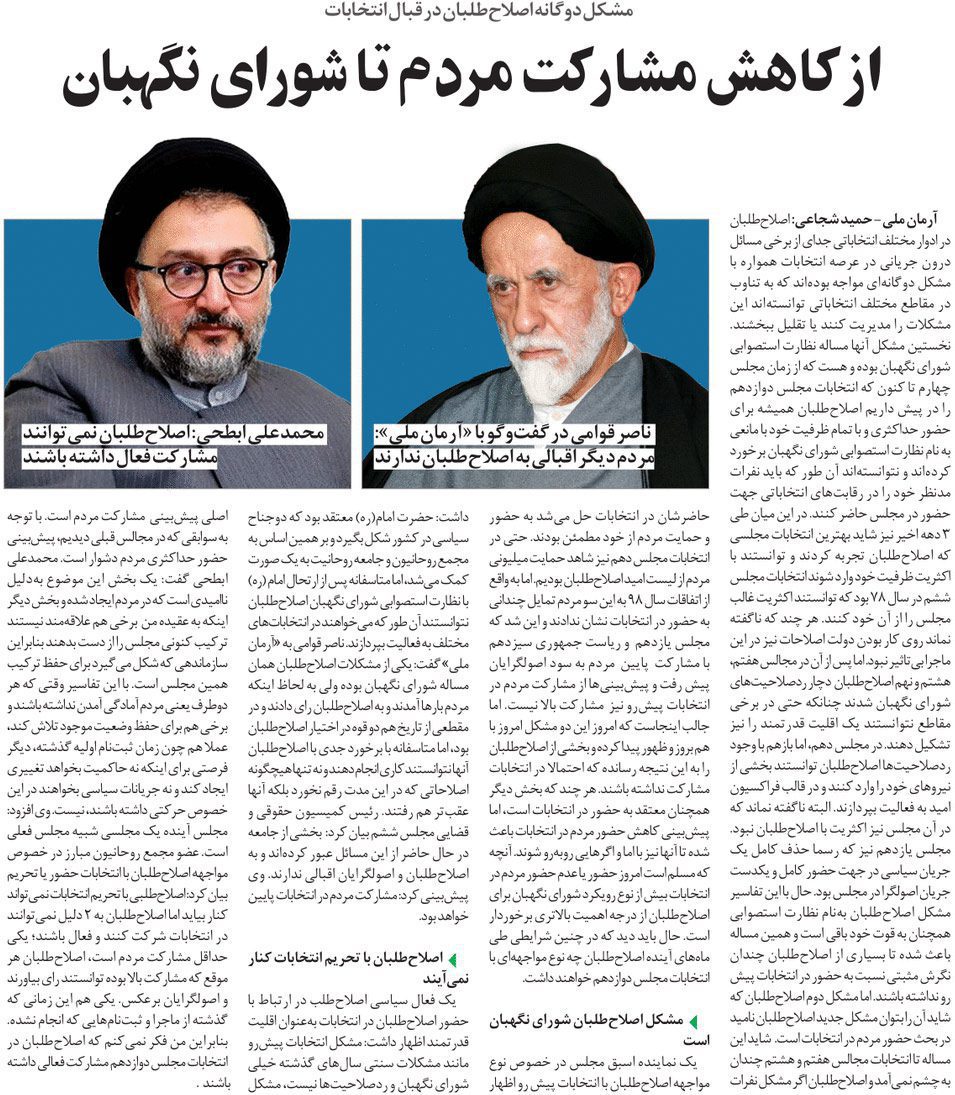 روزنامه آرمان ملی: از کاهش مشارکت مردم تا شورای نگهبان