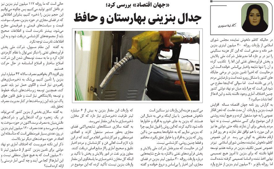 روزنامه جهان اقتصاد: جدال بنزینی بهارستان و حافظ