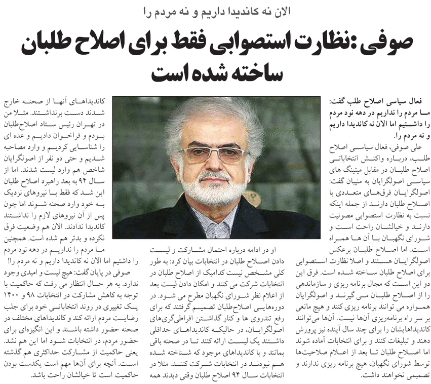 صوفی: نظارت استصوابی فقط برای اصلاحطلبان ساخته شده است