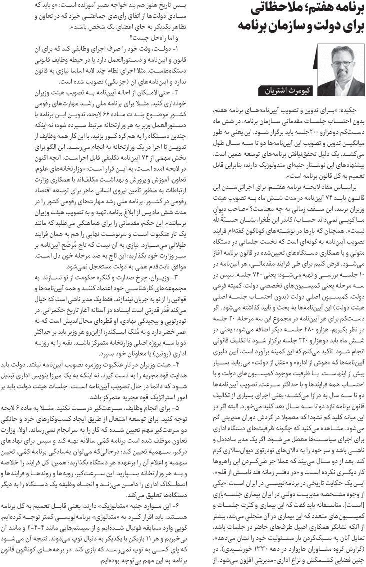 روزنامهٔ شرق: برنامه هفتم، ملاحظاتی برای دولت و سازمان برنامه