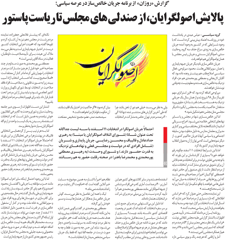 روزنامهٔ روزان: گزارش «روزان» از برنامه جریان خالصساز در عرصه سیاسی؛