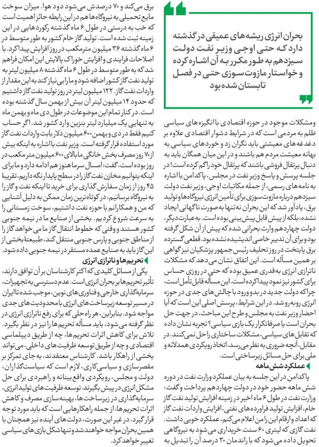 روزنامهٔ آرمان ملی: پاسخگویی وزیر نفت به میراث گذشتگان